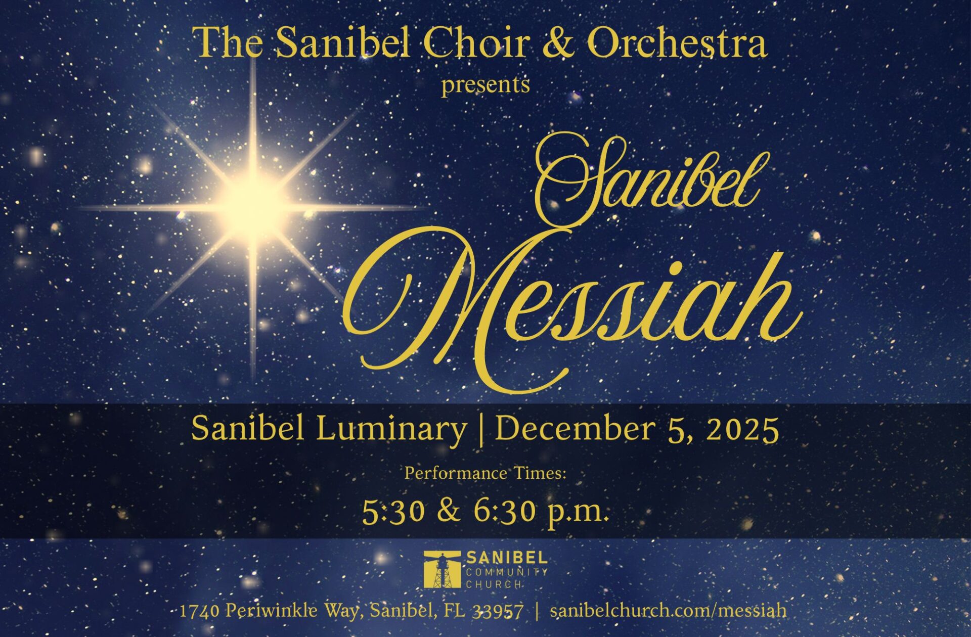 The 2025 Sanibel Messiah event is a multi-church effort— “Joining Many Churches in One Choir”— in order to present the gospel in one song, to a large number of community guests during the Sanibel Island city-wide Luminary event.